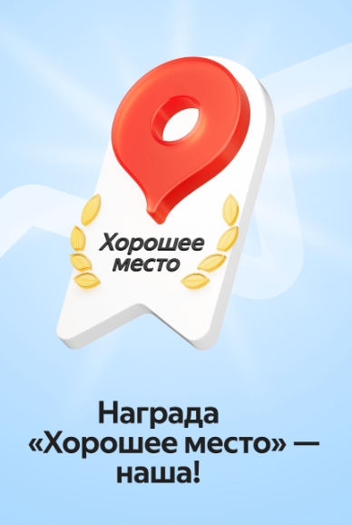 Это престижная награда ежегодно вручается лучшим местам, отмеченным пользователями за высокий уровень обслуживания, положительные отзывы и полную актуализацию информации на платформе Яндекс.Карт!